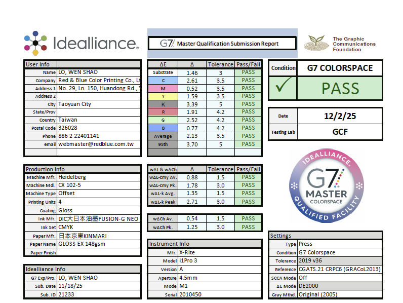 機器是海德堡CX-102,一部老機器了,沒有太多先進的配備,全憑領機的經驗/能力,經由數據的輔助,硬把印刷規格拉進G7規範裏。這是今年6月間的事。