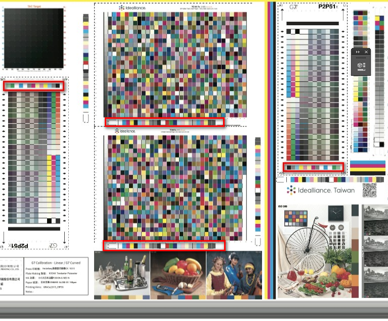 測試的機器在6月時有先測過,當時在線性版的狀態下藉由調整機器(壓力、橡皮布…)及油墨(溫度、凡利油…)即可在不改版的狀態下完全以機器的調整能力達成G7 (CRPC6)Targeted ,請參考:https://fredkuo.idv.tw/wordpress/?p=3762